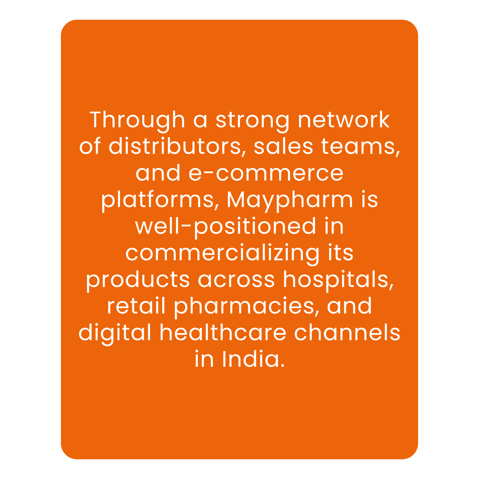 Maypharm Lifesciences maintains a strong international presence while keenly focusing on the rapidly evolving healthcare needs of India. We leverage a robust and well-established sales and distribution network to ensure widespread product access.